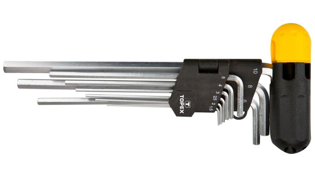 - A TOPEX imbuszkulcsok nagy ellenállóképességű, a terméknek hosszú élettartamot biztosító króm-vanádium acélból készülnek.